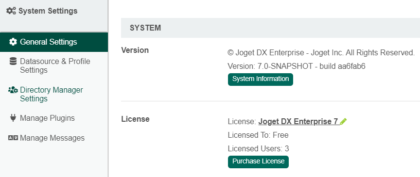 Note down the product edition and version that you have installed - (i.e. Joget DX Enterprise) and version (i.e. Version 7)