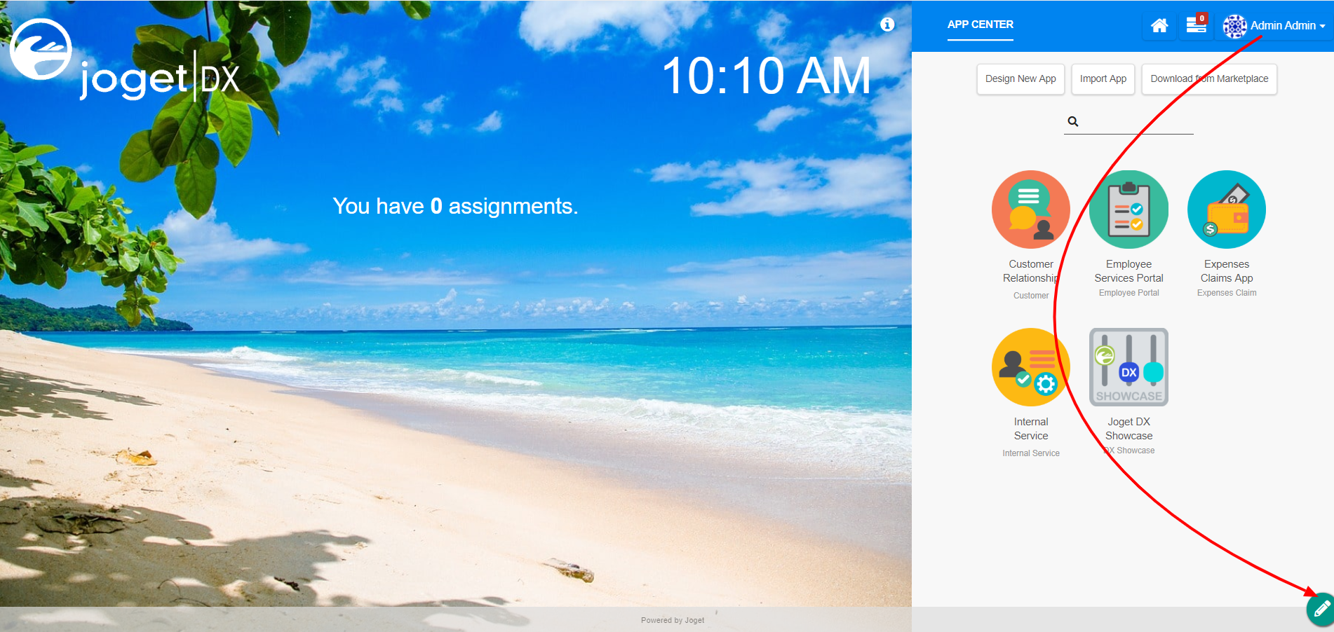 The Admin Bar is first introduced in Joget Workflow v4 that provides administrators a consistent (and convenient) way of managing apps and users.