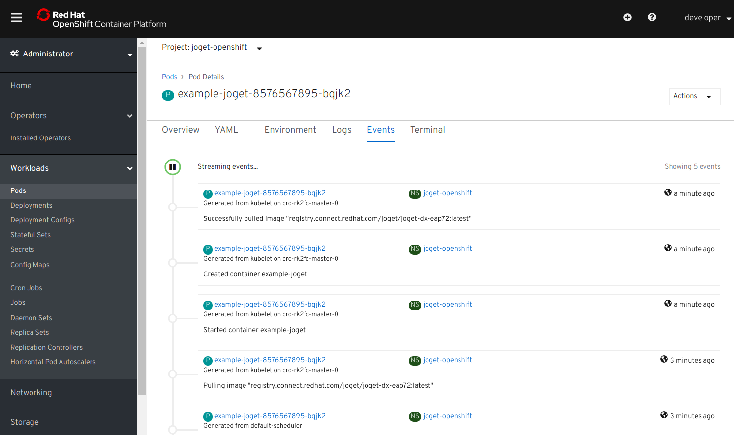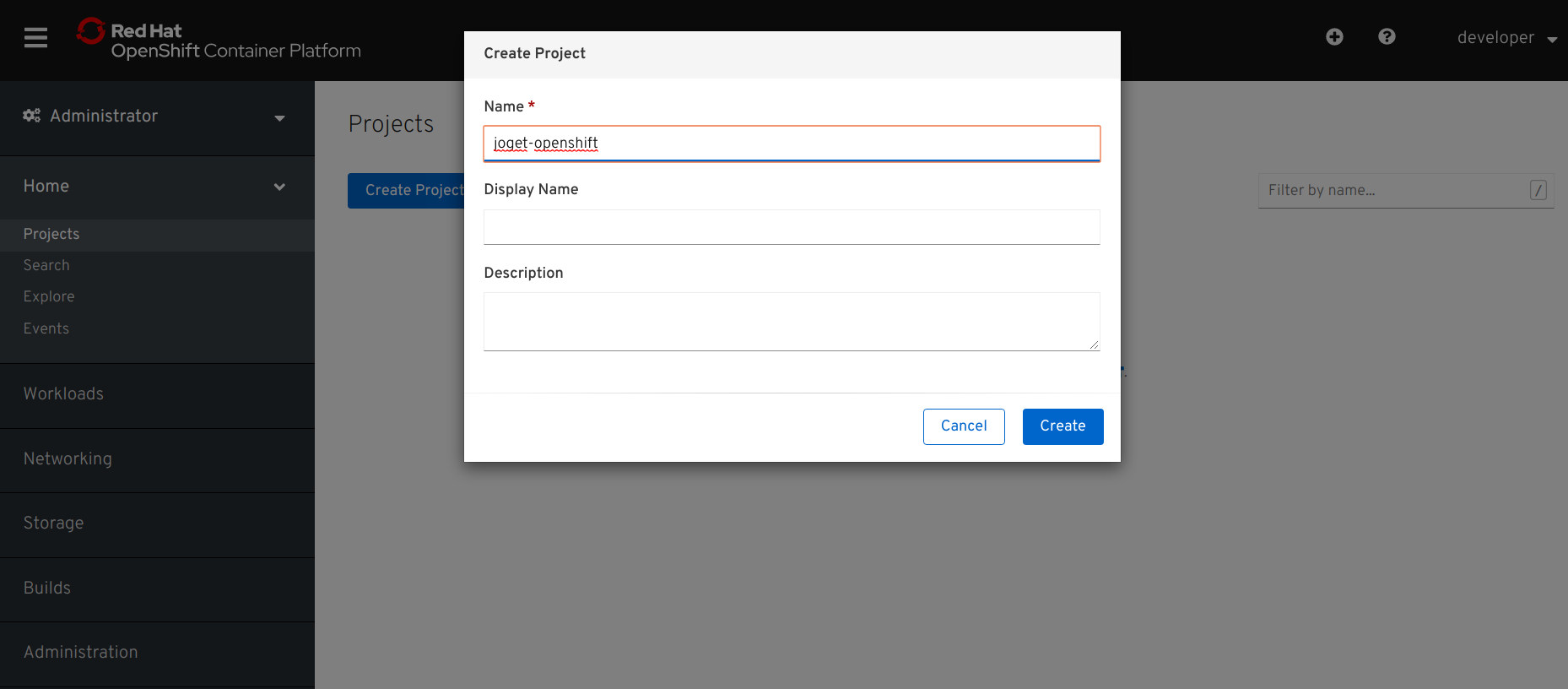 1. Now that the Joget Operator has been installed, login to the OpenShift console as a normal user.