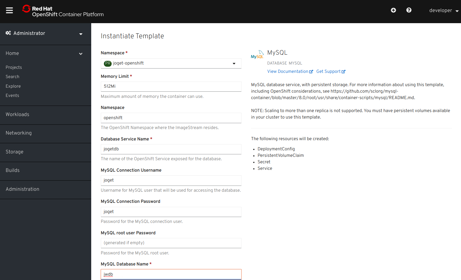 4. The fastest way to deploy MySQL would be to use the OpenShift CLI e.g.: