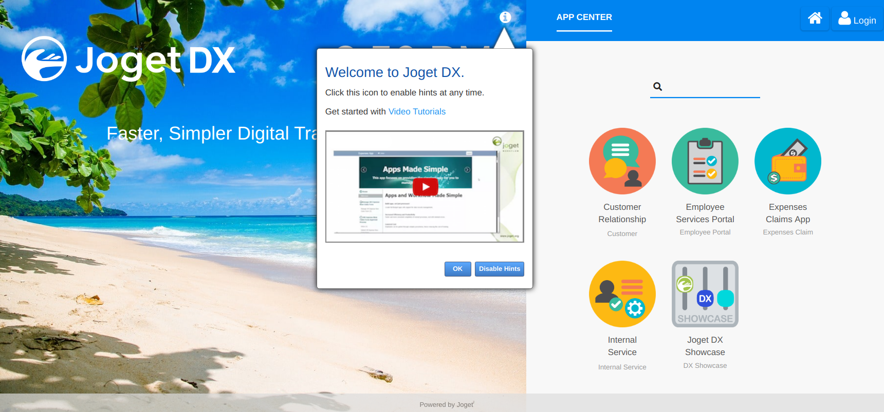 4. Once the setup is completed, click on Done and you will be brought to the Joget DX App Center.