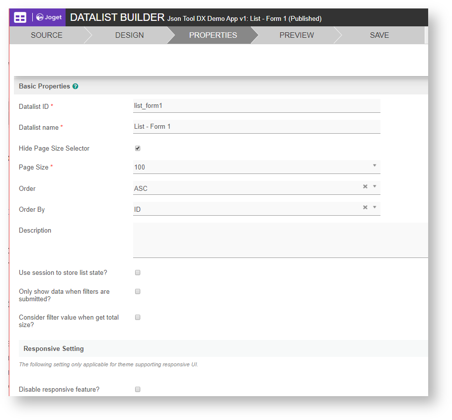 Figure 1: Datalist Properties