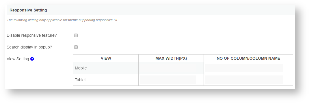 | View Setting | Use these fields to control the responsive setting on mobile and tablet. |
