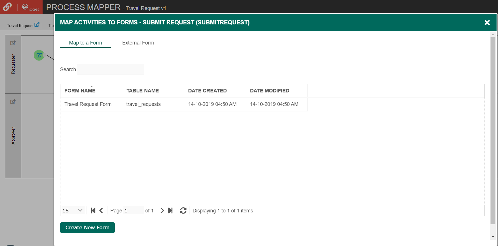 In the Process Mapper, click on an Activity to open up the Map Activities to Forms.