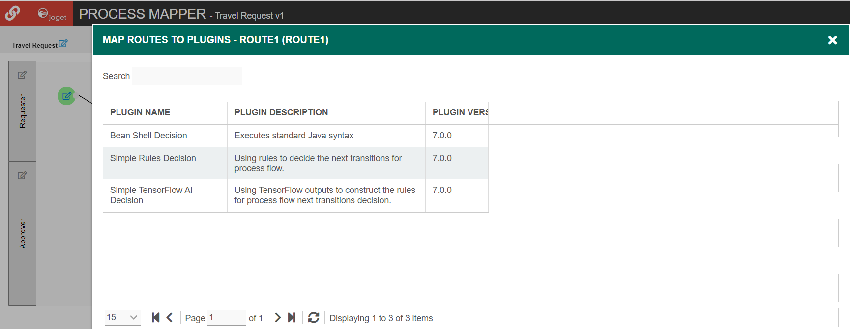 In Map Routes to Plugins, you can map routes defined in the process to plugins. Select the Simple Rules Decision plugin.