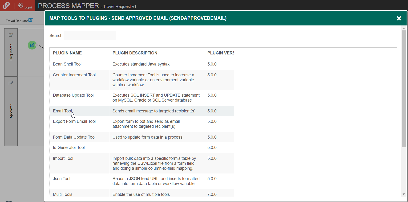 By clicking on a Tool in the Process Mapper, it will open up the Map Tools to Plugins.