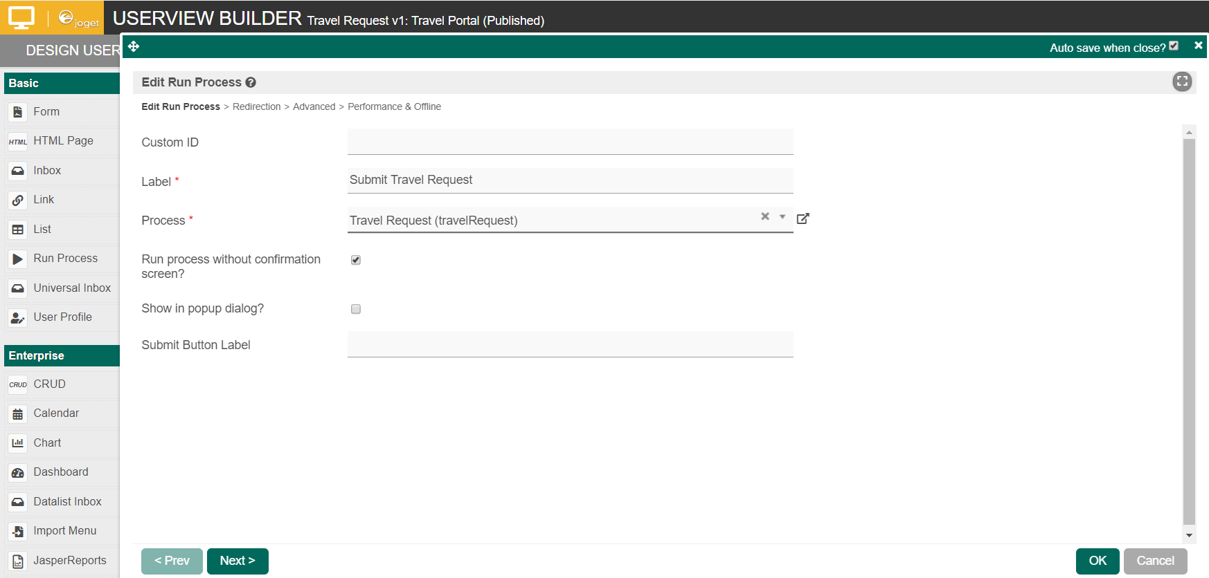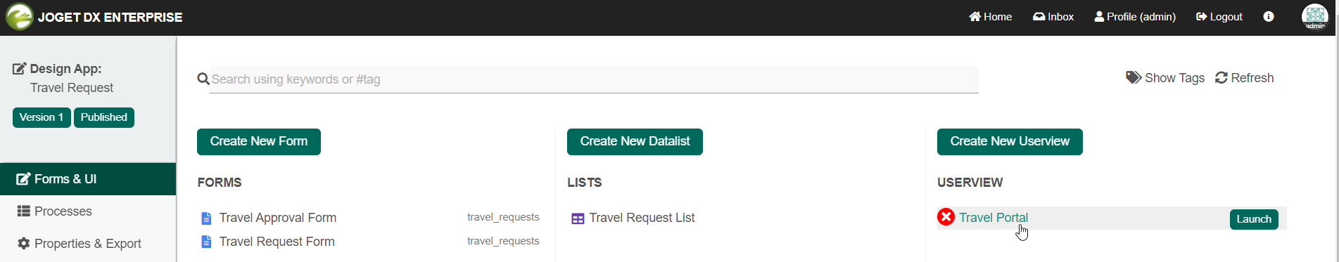 Save the userview, and you will be able to run and perform assigned tasks in the published userview.