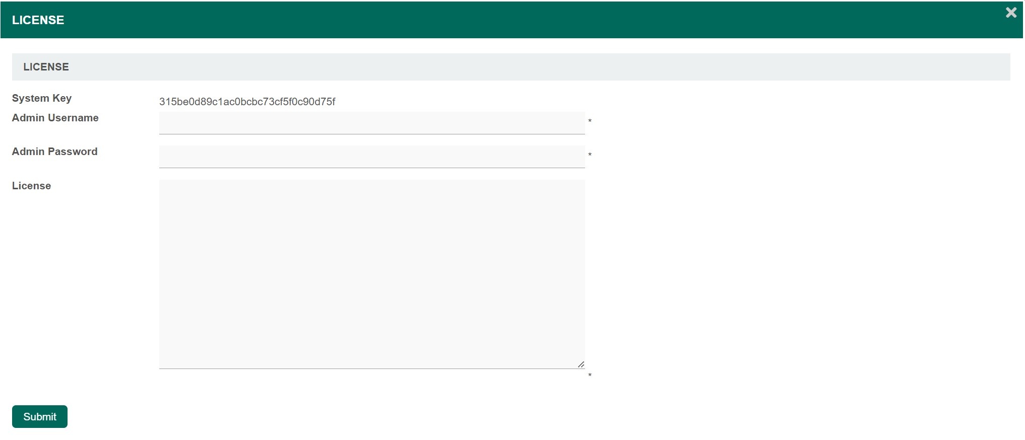 In your Joget Settings page, you can see the system information and license details with a clickable license link that opens a popup to key in your license key. You can find your system key here.