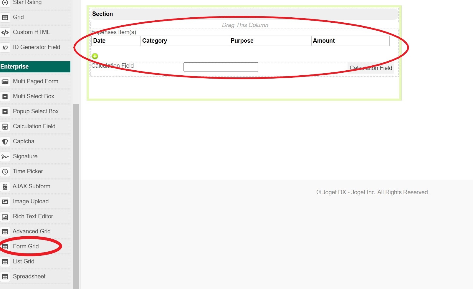 Yes. Form Builder allows users to add multiple rows (with support for simple calculations) of items.