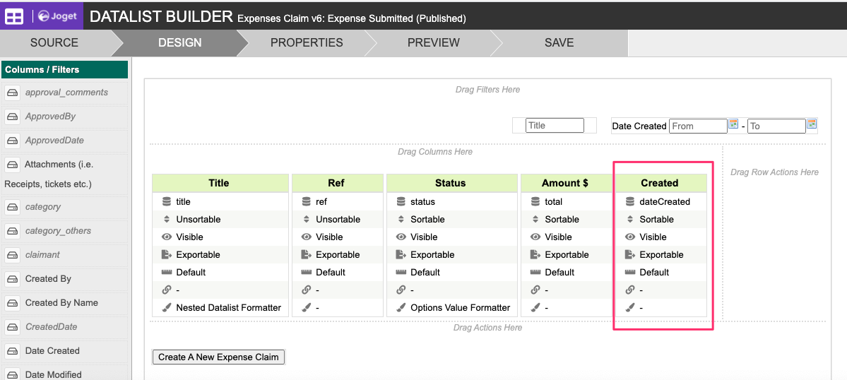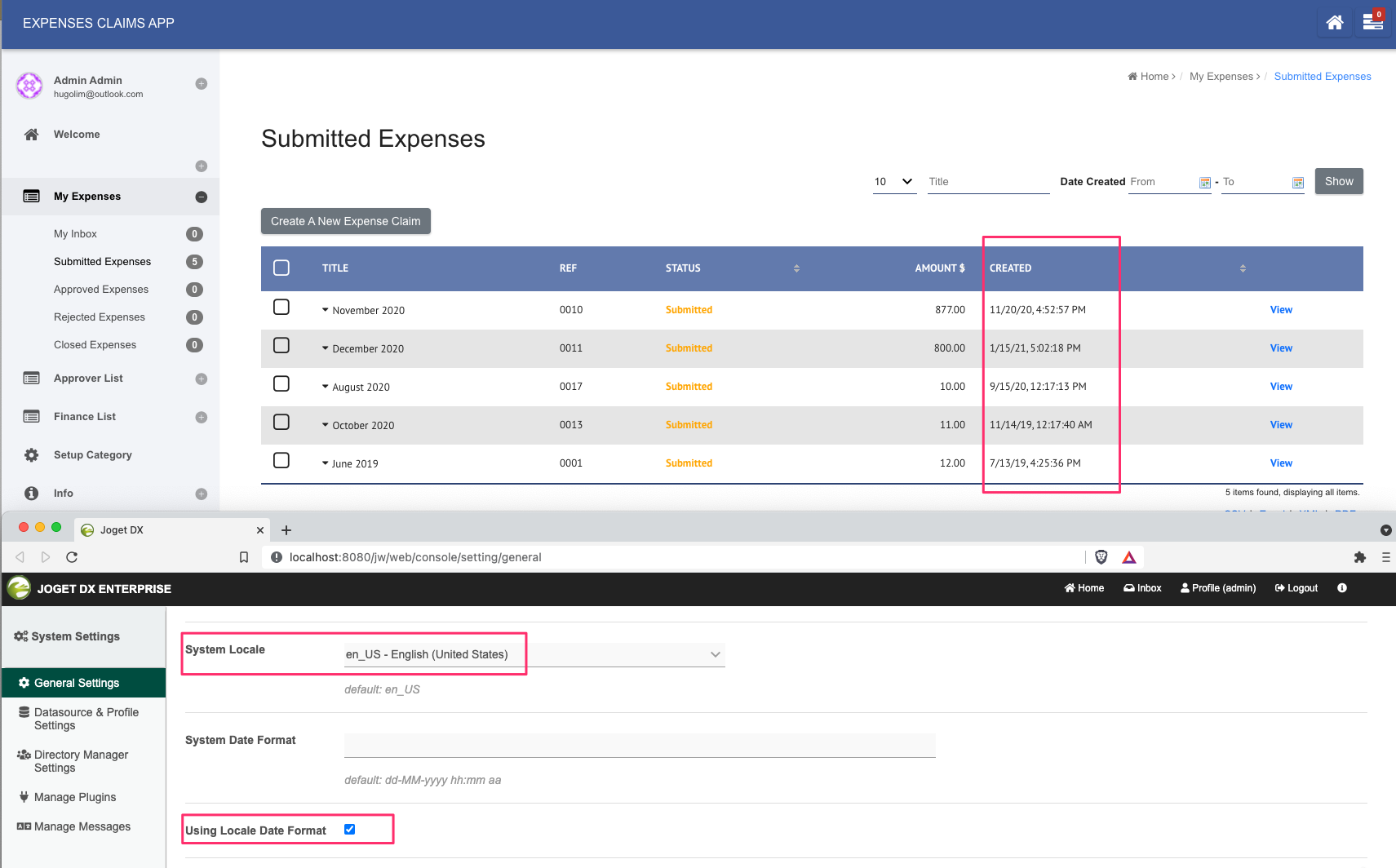 Figure 3: dateCreated is platform default column that will follow system locale format set