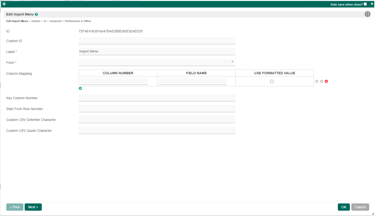 Figure 6: Import Menu Properties - Advanced
