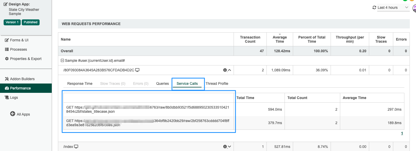 The server calls in app's performance tab is a good place to refresh your memory as it will be able to help to list down calls being made outside of the Joget server over a period of time.