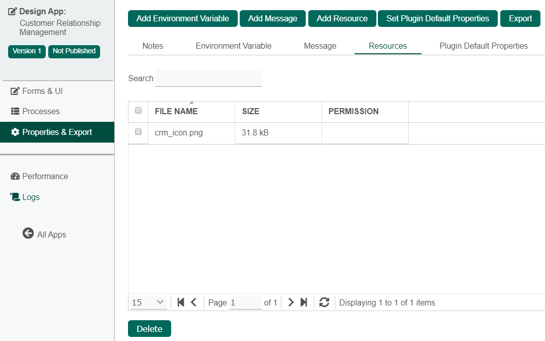 Add Resource allows you to upload a file to be added into the App.