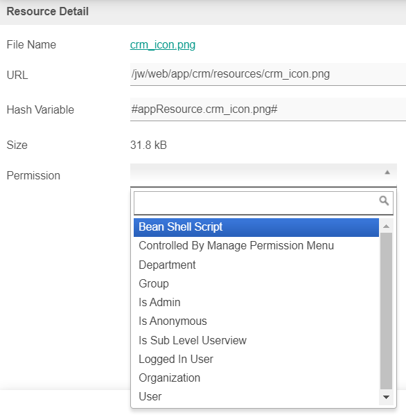 For each resource (file) added, you can manage the permission settings. Leave the "Permission" field empty if you want to give "everyone" access to the resource. For example, "IsAnonymous" will not allow any logged in users to access the resource.