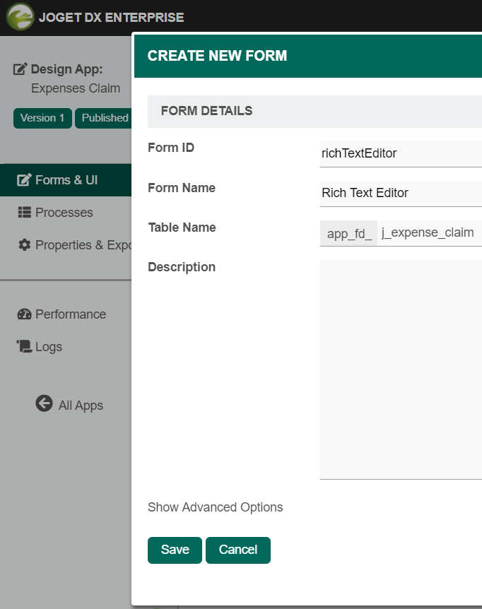 The easiest way to see how the Rich Text Editor works are to use the existing built-in App Expenses Claims. Here are the steps: