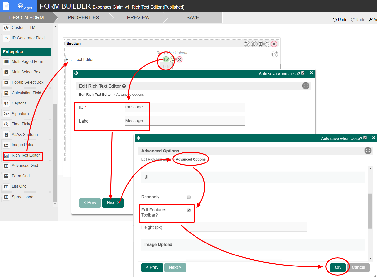 - Click on Advanced Options, tick on Full Features Toolbar? and click the OK button. (see Figure 3)