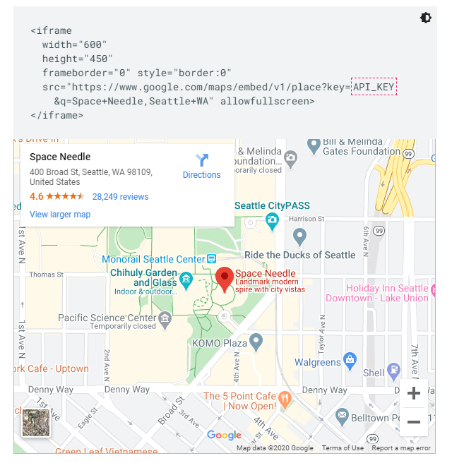 Reference: https://developers.google.com/maps/documentation/embed/get-started