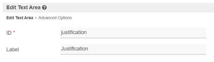 ID | Element ID (By declaring as "justification", a corresponding database table column "c_justification" will be created) |