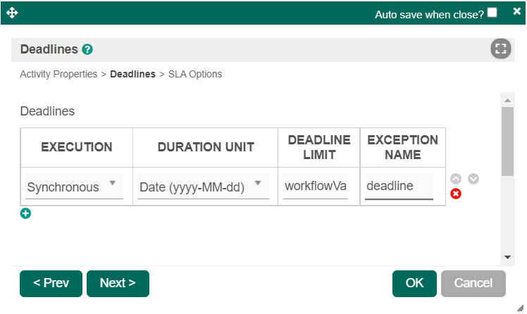 Please note that when using non workflow variable value in "Deadline limit" for date type format of "Duration unit", you will be required to quote the value.