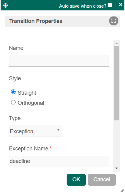 On the transition leading out of the first activity, edit it's properties by matching the Exception name of the Deadline set earlier with the "Expression" field.