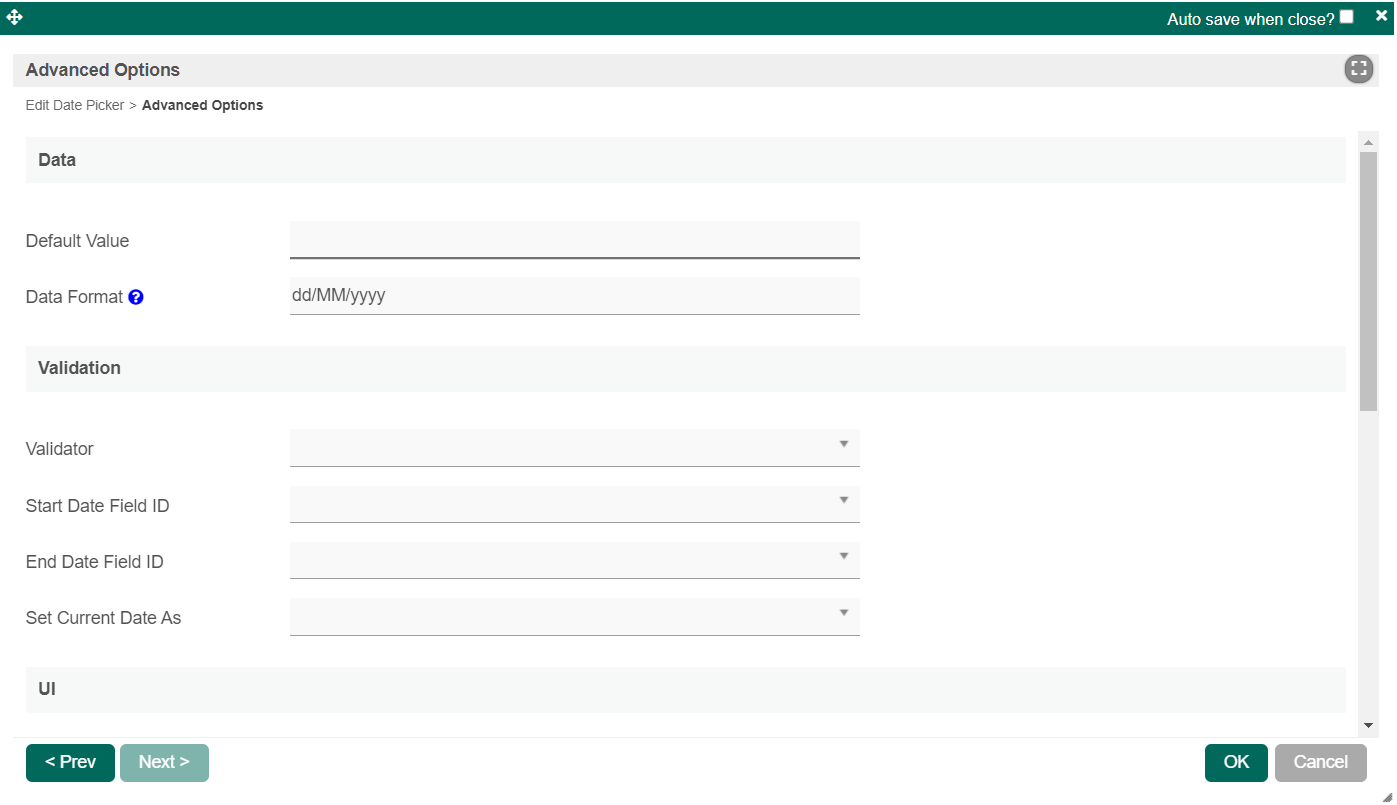 Figure 6: Edit the date picker's properties and set "Data Format" to "dd/MM/yyyy"