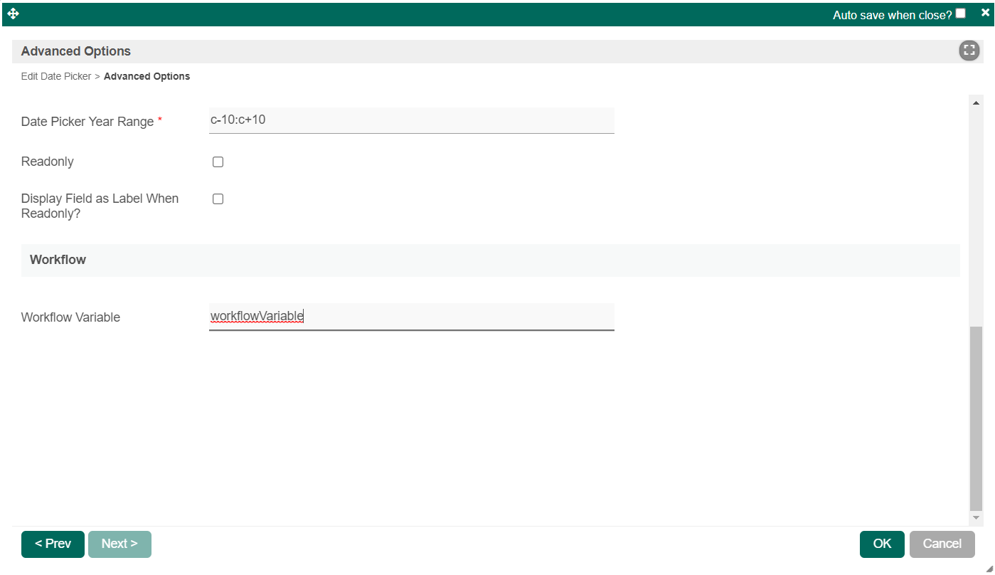 Figure 7:  Map the Date Picker's value to the Workflow Variable