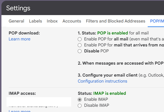 You need enable POP, and IMAP in google mail settings