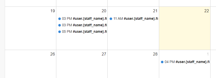 I tried the following format but it's not showing properly in the calendar ('#user.{staff_name}.firstName# #user.{staff_name}.lastName#')