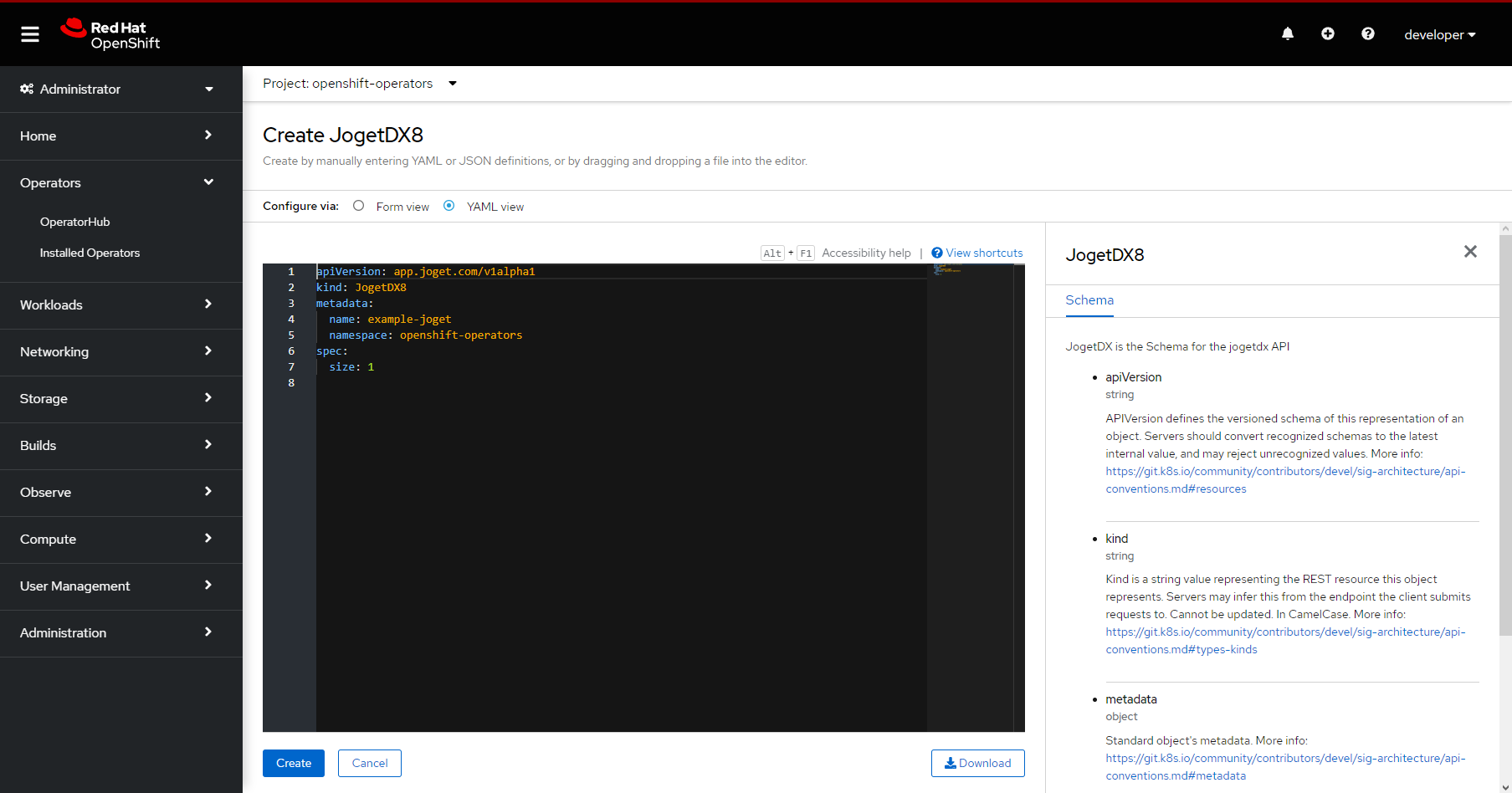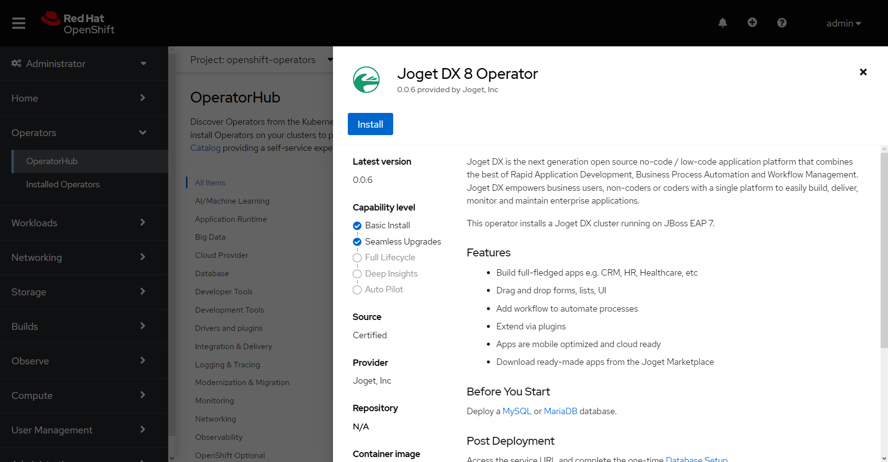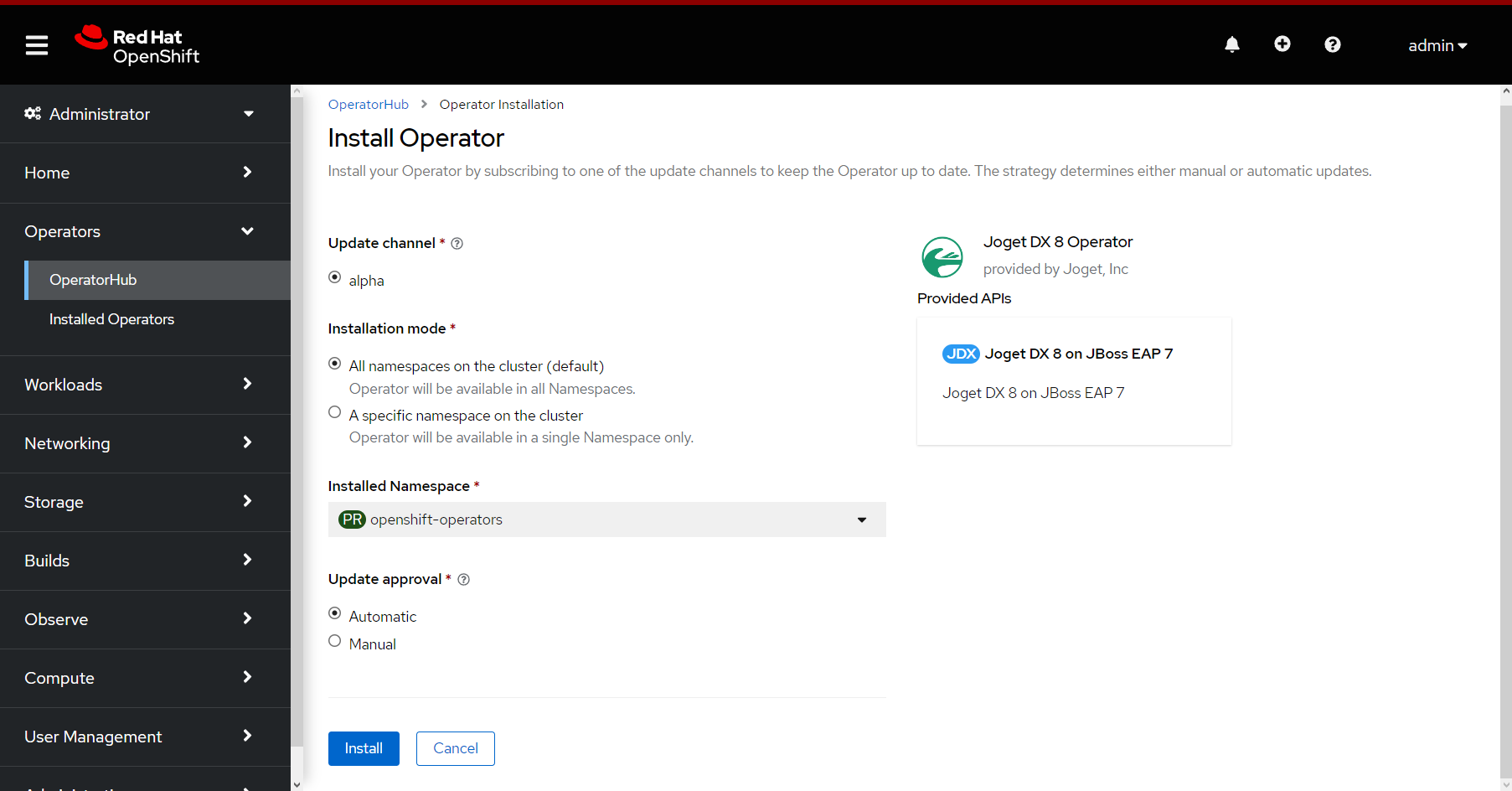 1.1 Install Joget DX 8 Operator as Cluster Admin