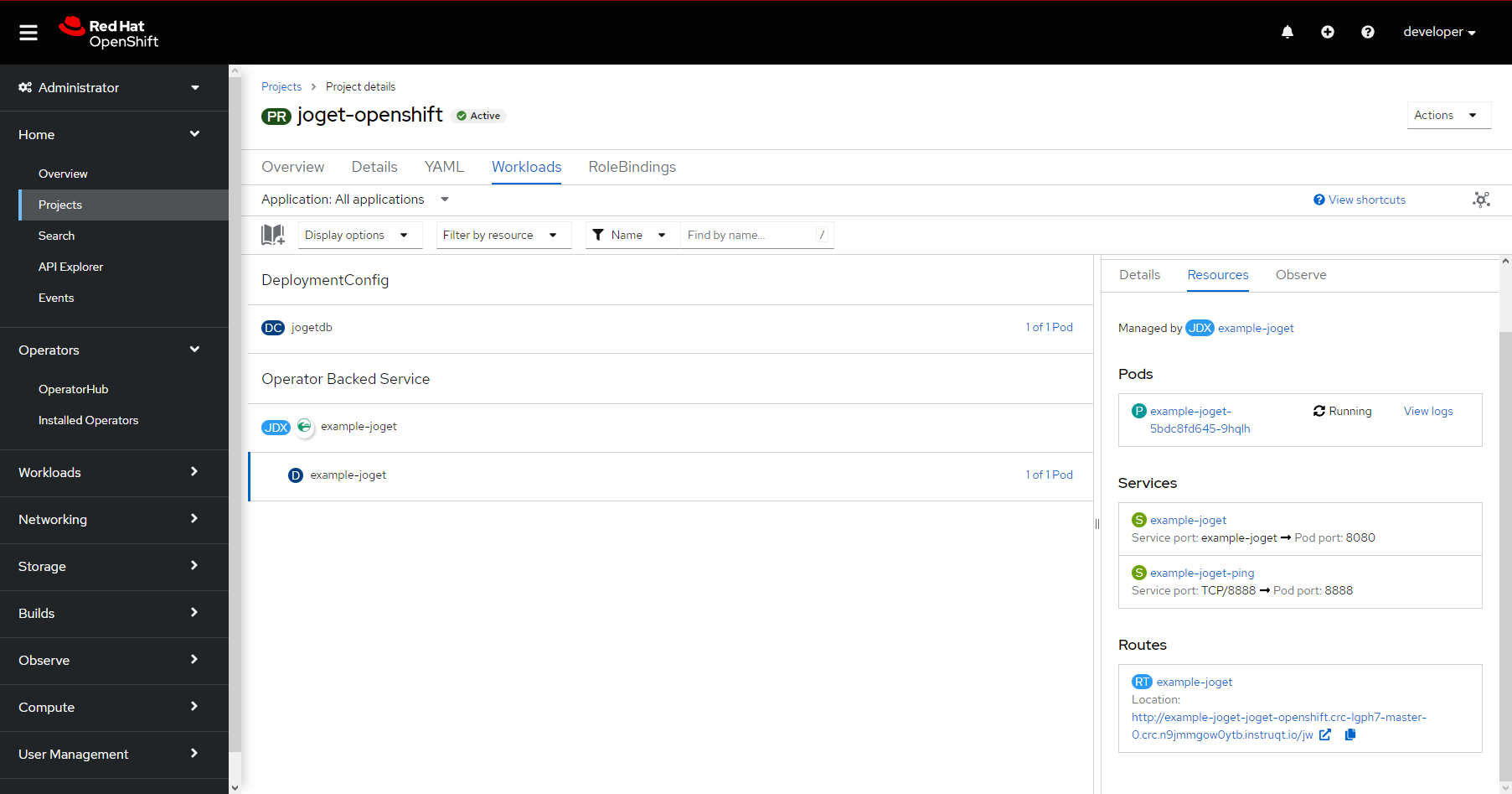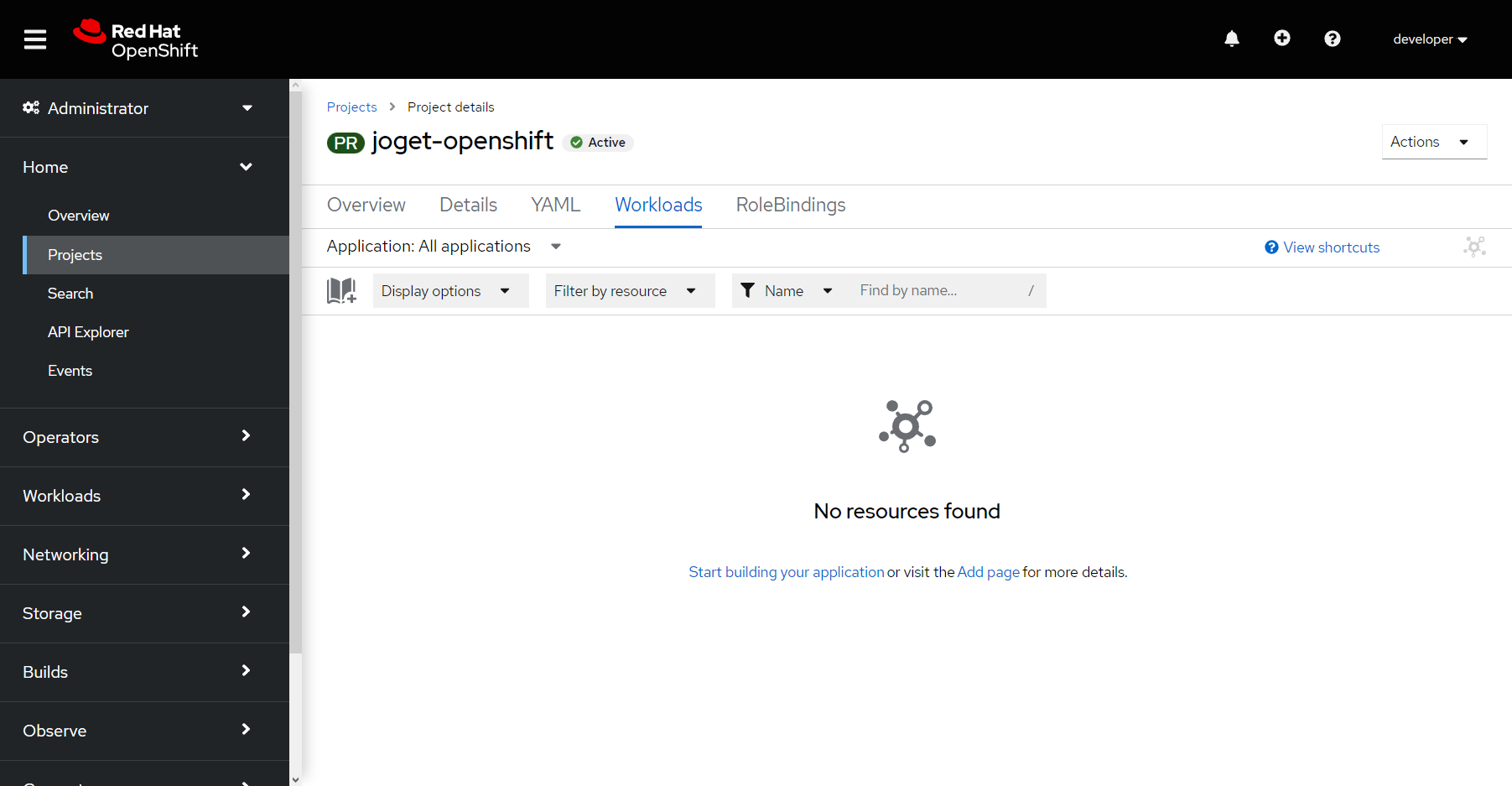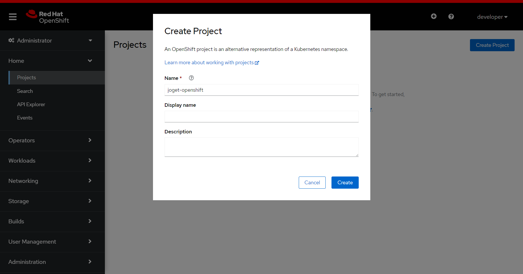 Now that the Joget Operator has been installed, login to the OpenShift console as a normal user.