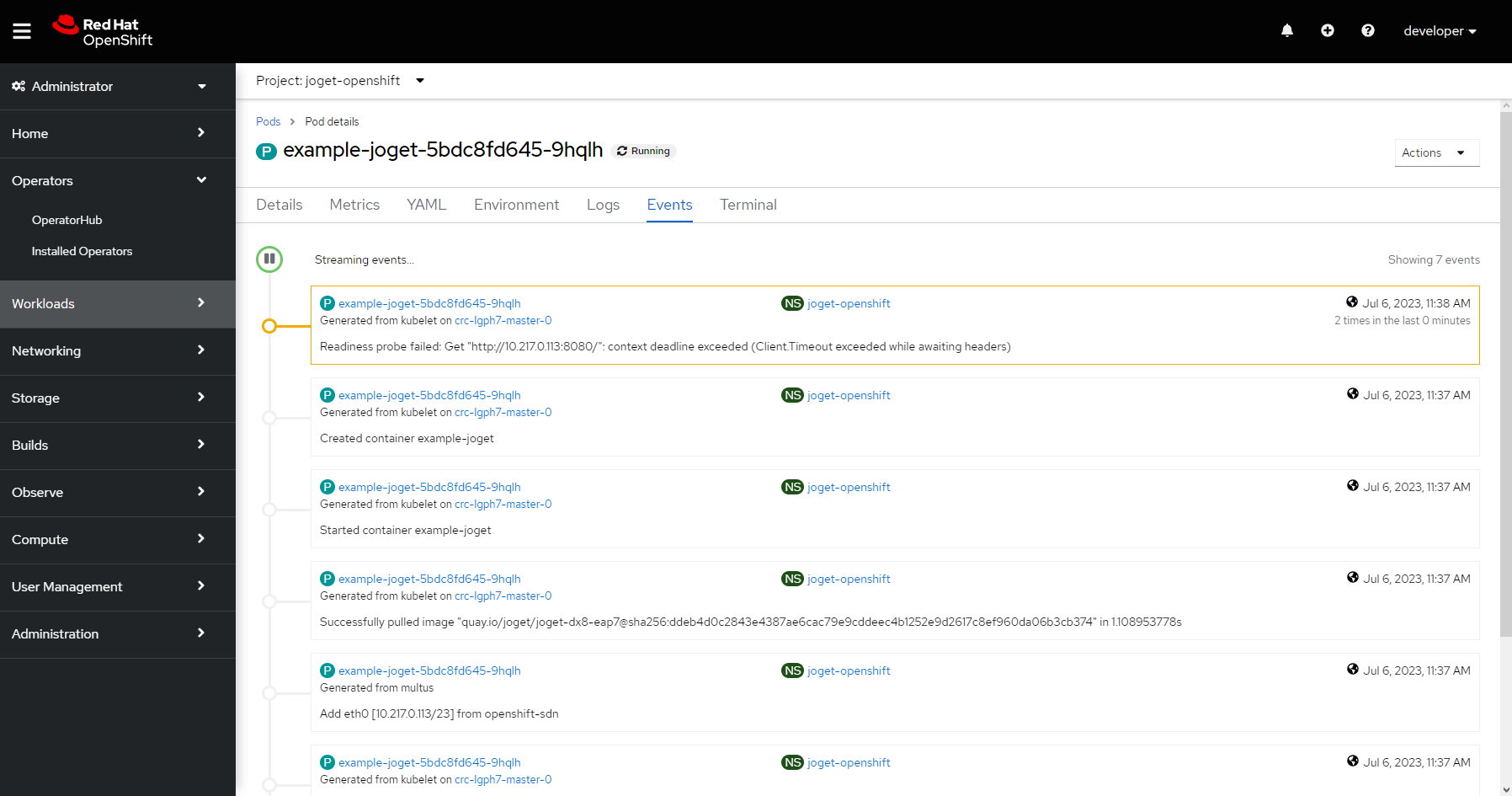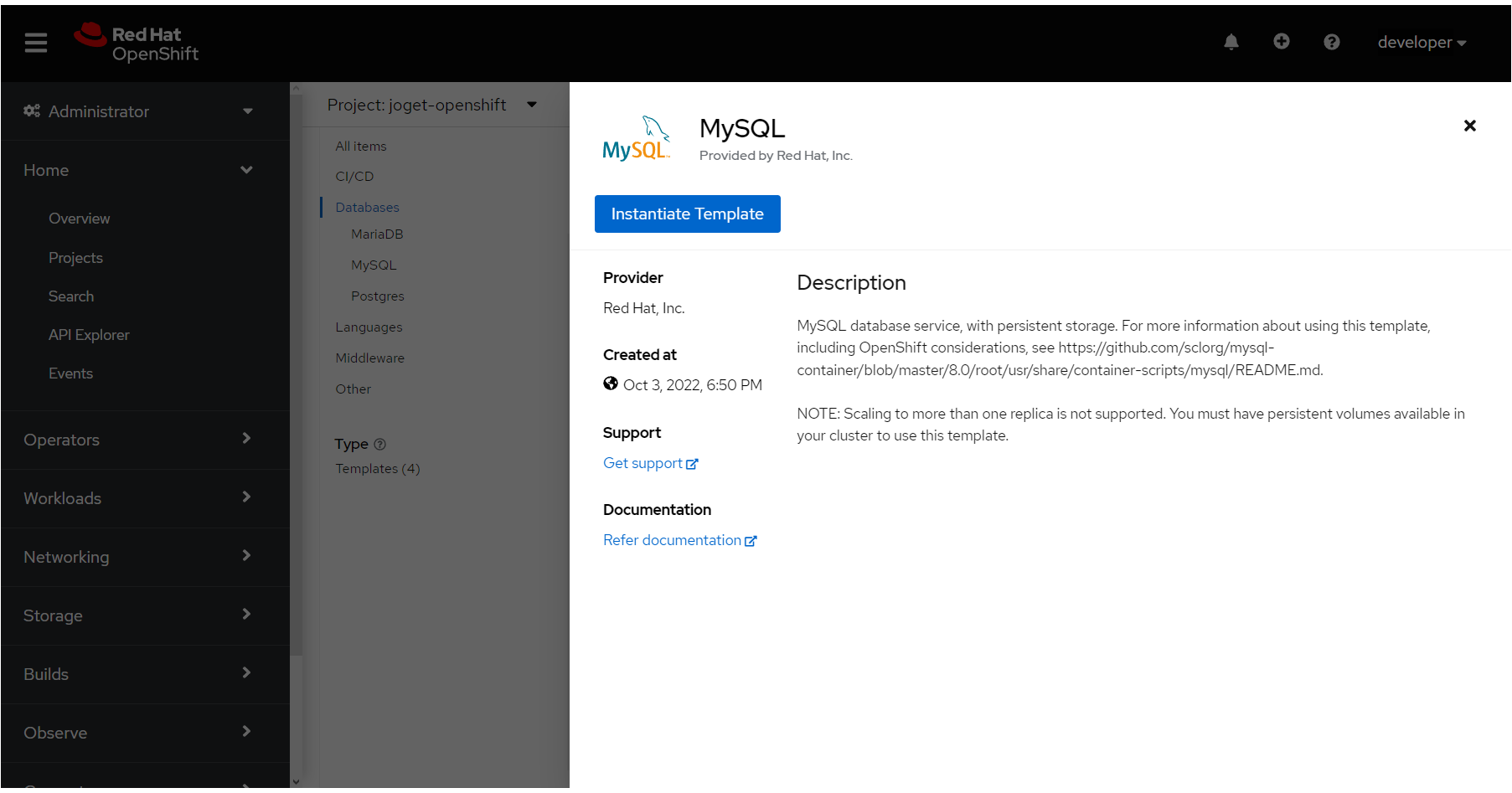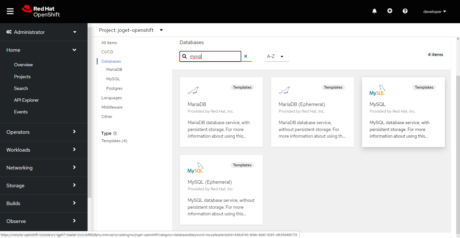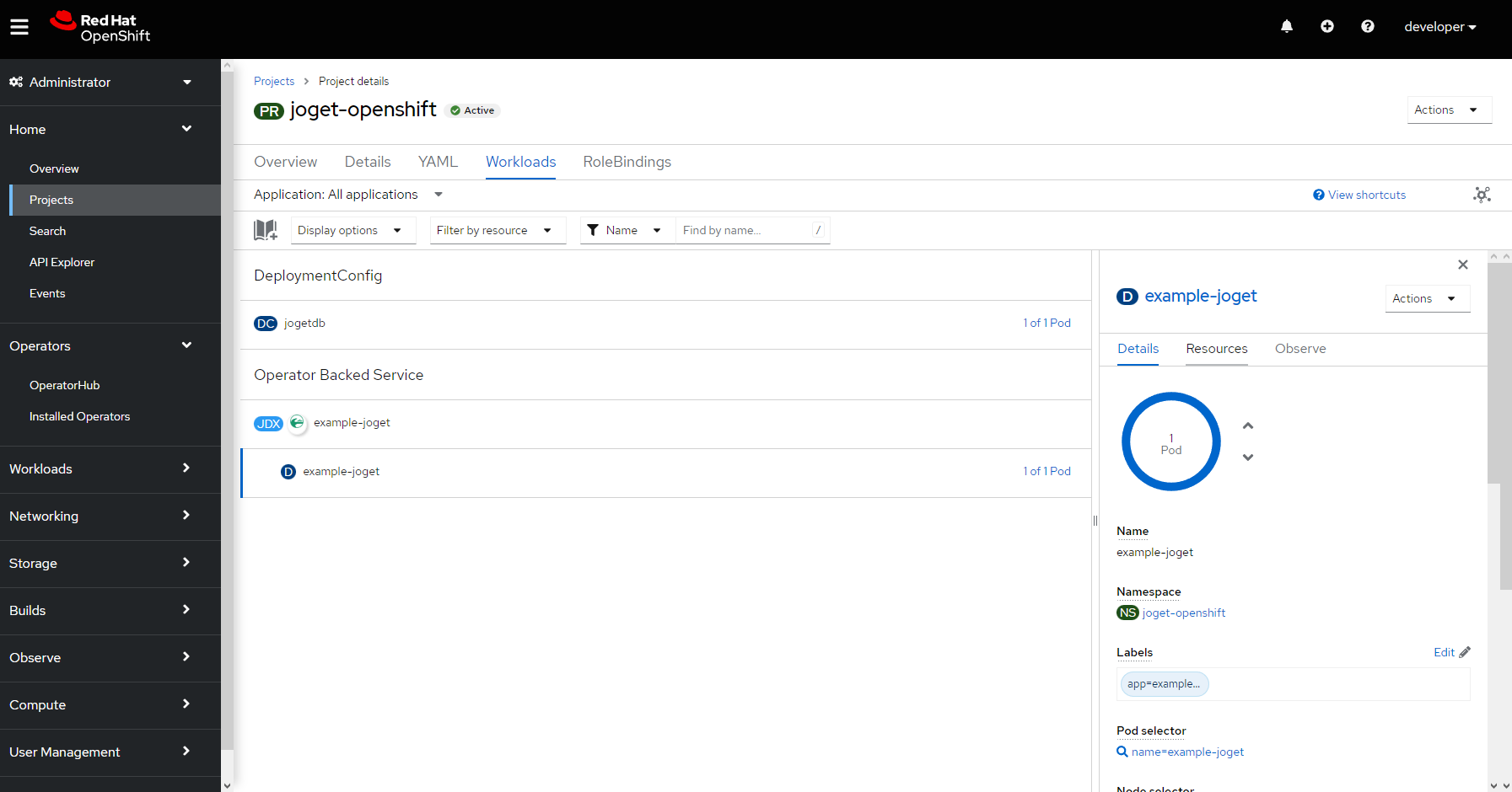 Now that the Joget Operator has been installed, login to the OpenShift console as a normal user.