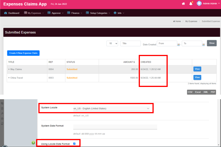 Here's a quick comparison by using the default Expenses Claim app on the "Created" column with no formatter used at all.