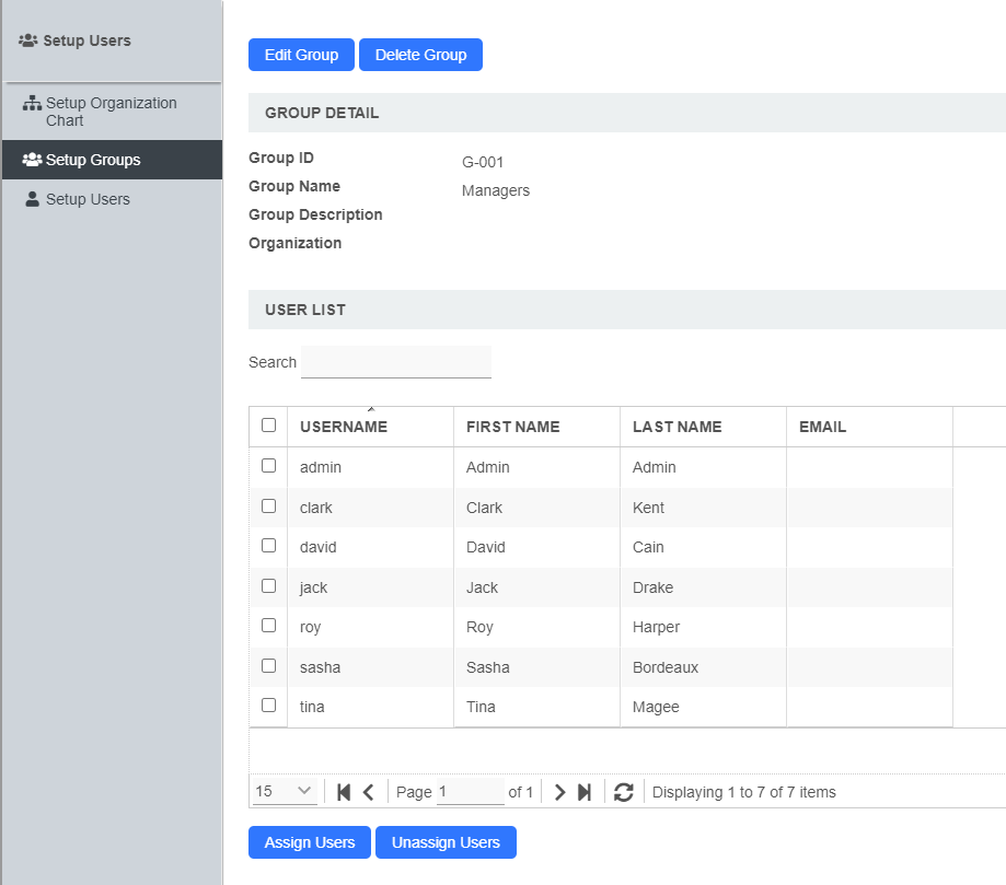 After done the configuration and save the userview. Let us test it. First, check the admin user is not in "Managers" group.
