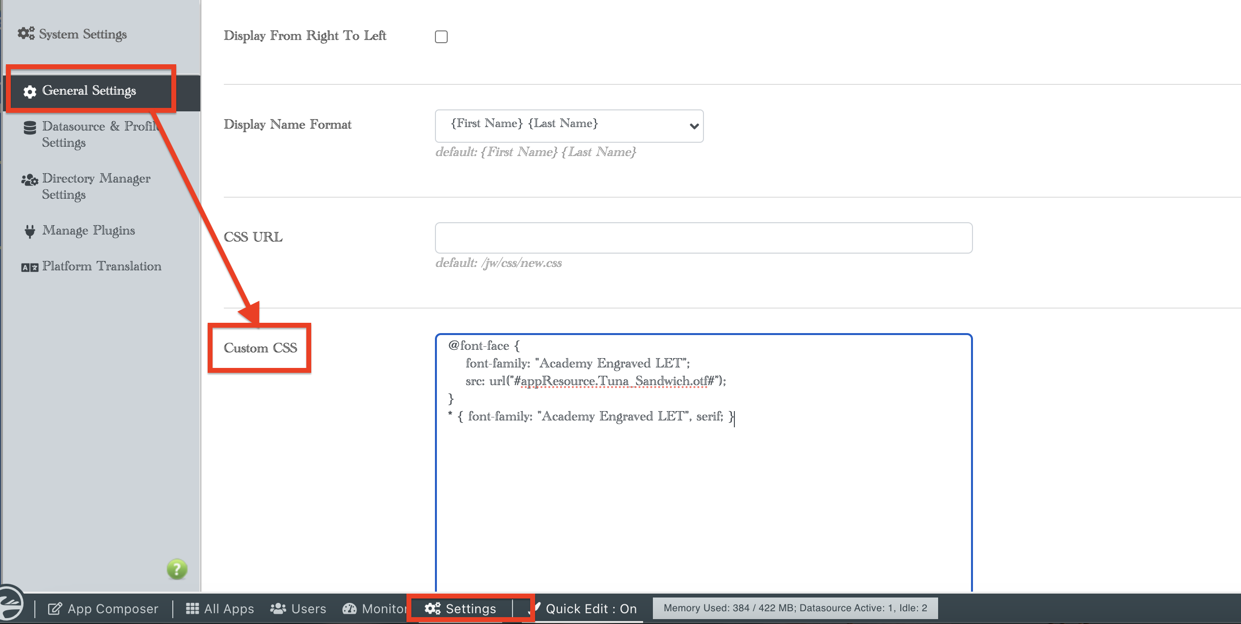 Firstly, download your desired font file. Upload your custom font file in Your Joget App (App Composer) > Resources > Add Resource and upload your font file.