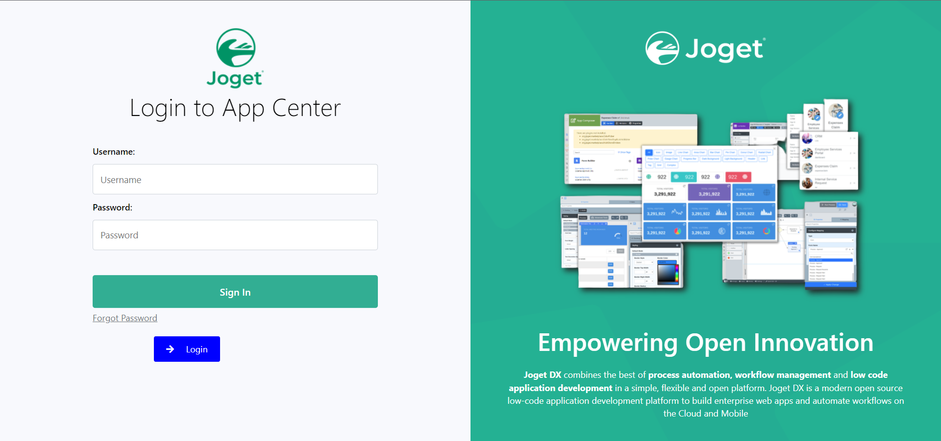 Figure 5: Joget Login Screen: Pressing the "Login" button will redirect you to the next screen.