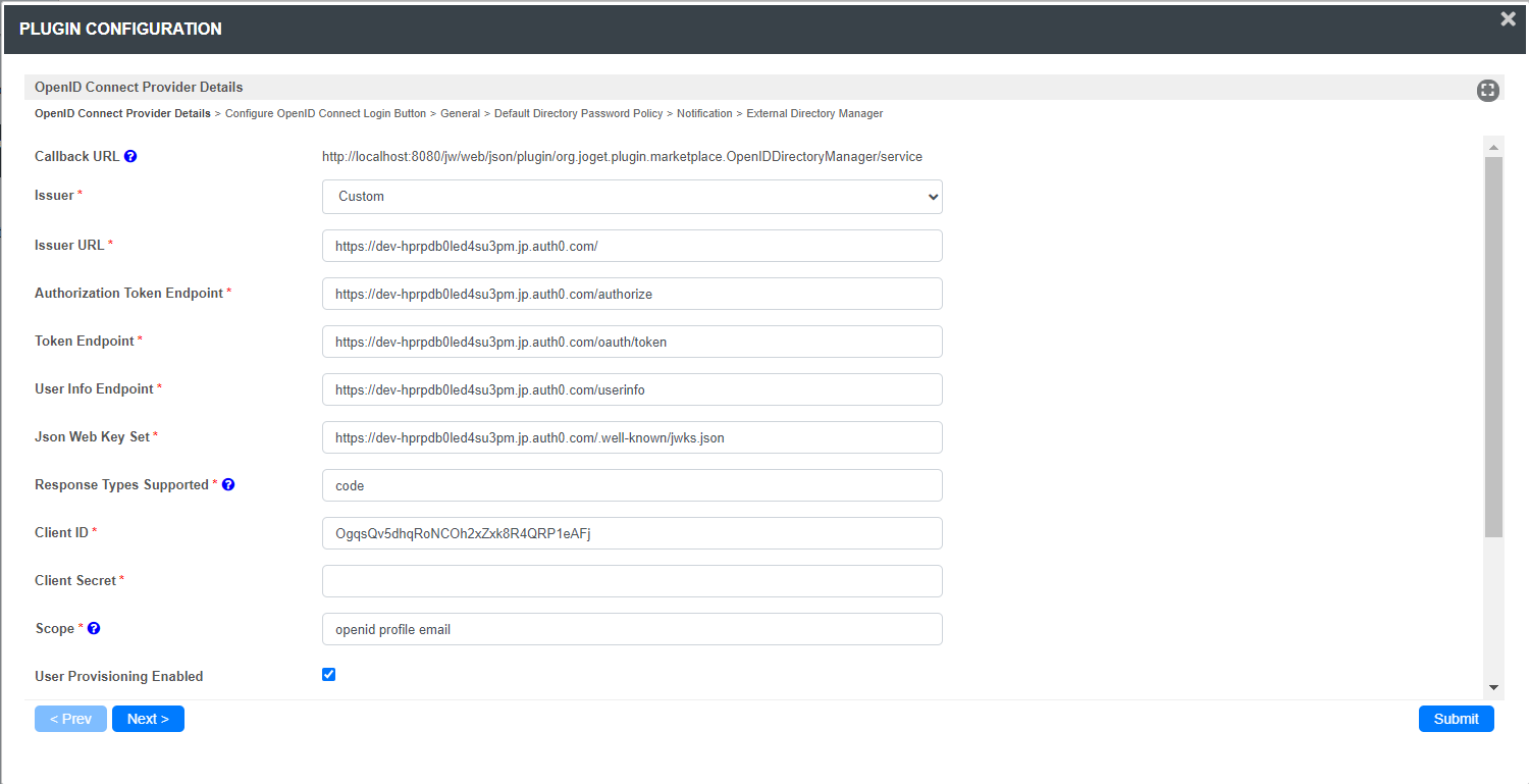- From the Application, copy the relevant values and paste them into the respective fields in Joget OpenID Connect Manager Plugin. Please refer to Figure 1 & Figure 3.