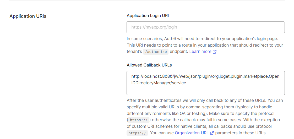 Figure 4: Callback URLs
