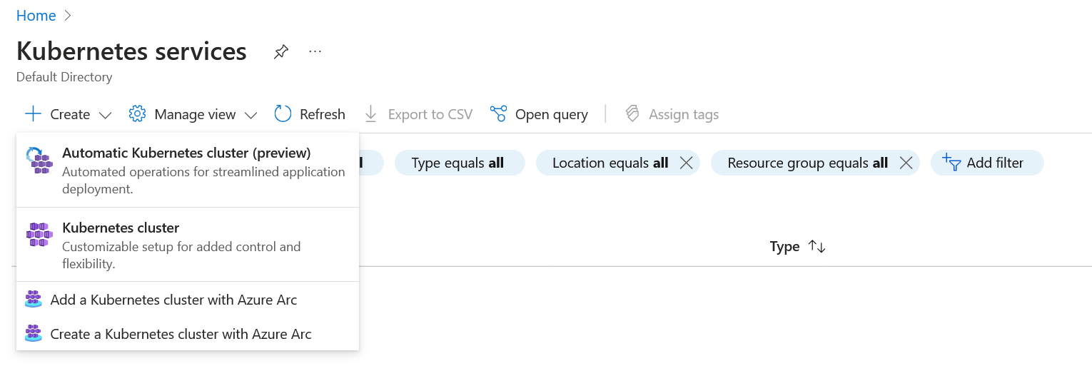 This guide will go through creation process with the Azure portal, if you want to create a cluster through Azure CLI please refer to the article Azure CLI.