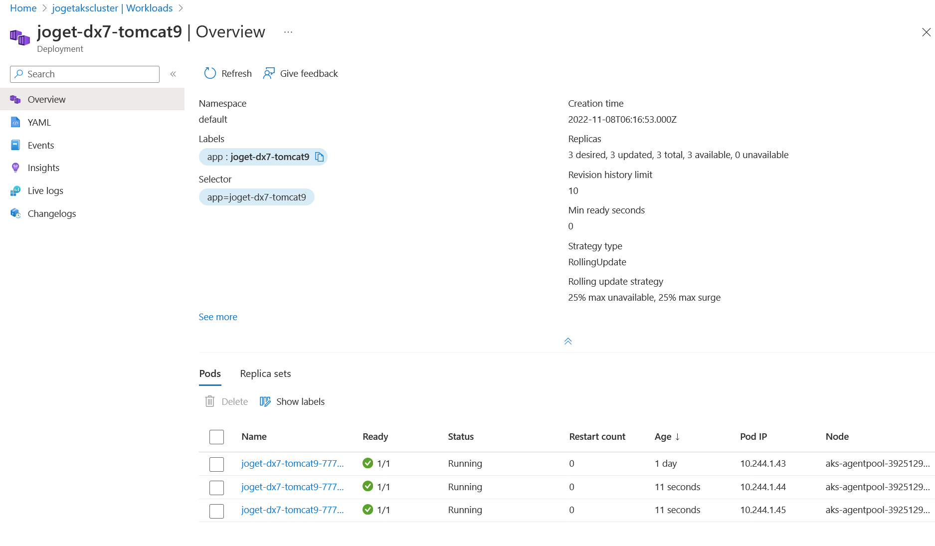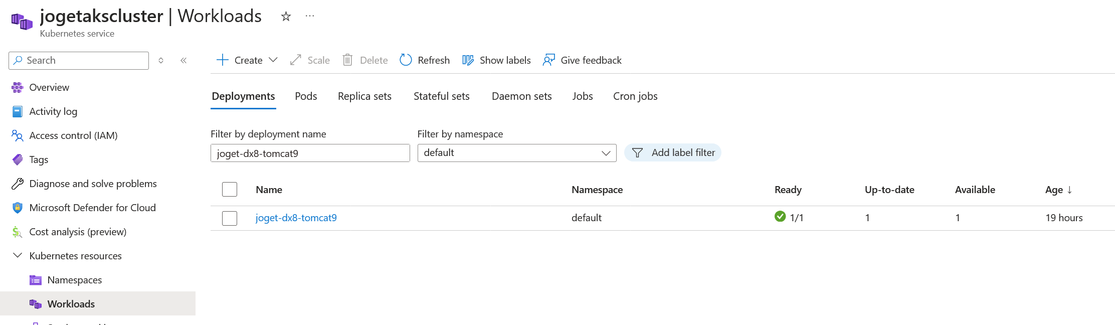 You can then check the deployment progress from the Azure portal. (Or use kubectl commands eg. kubectl get deployment joget-dx8-tomcat9)