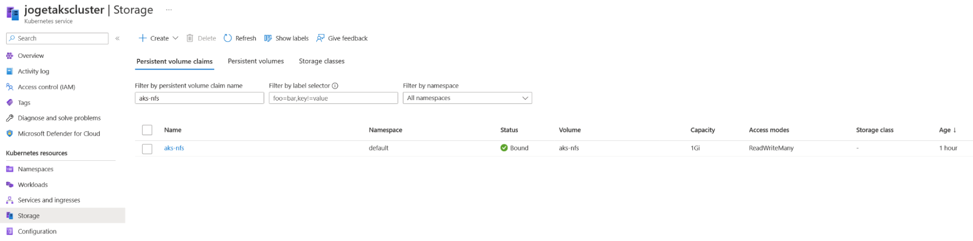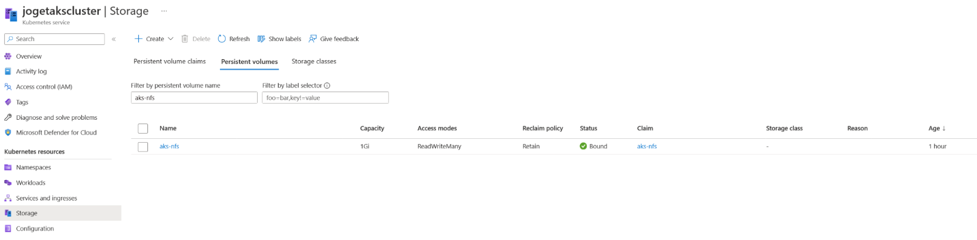 kubectl apply -f azurenfsstorage.yaml