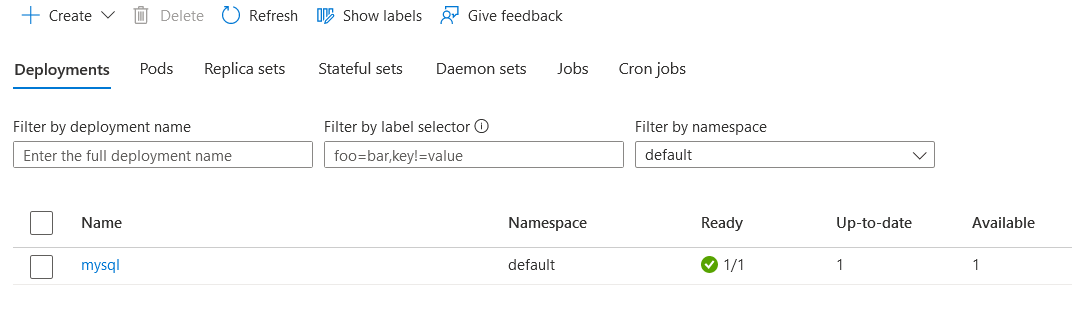 kubectl describe deployment mysql kubectl get pods -l app=mysql kubectl describe pvc mysql-pv-claim