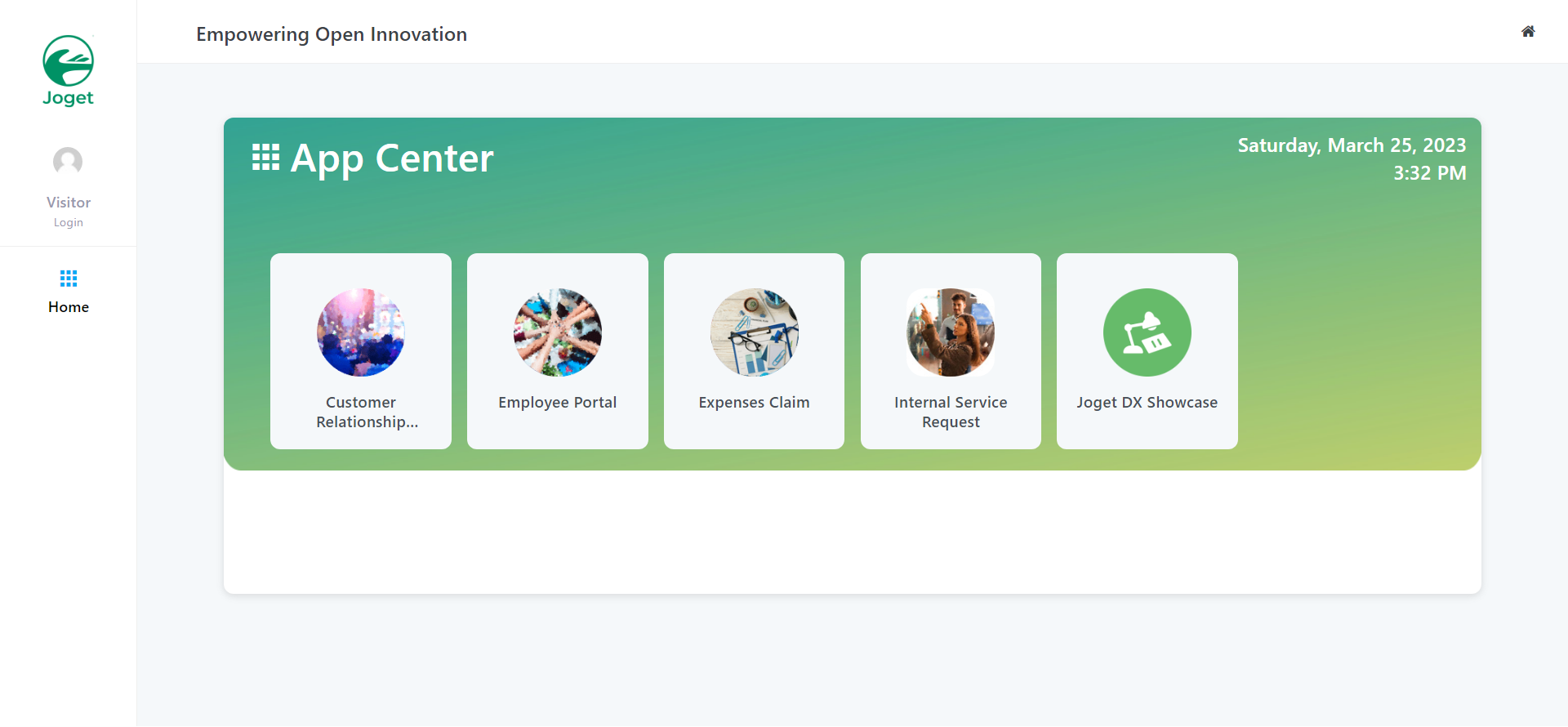Once the setup is complete, click on Done and you will be brought to the Joget App Center.