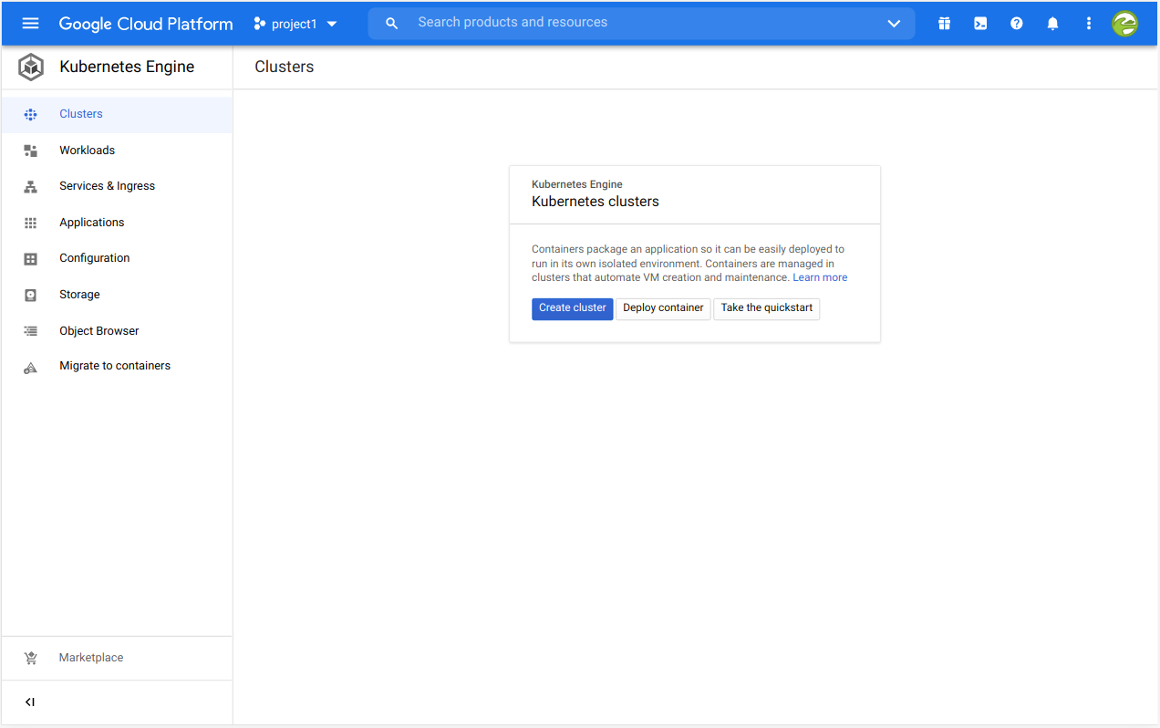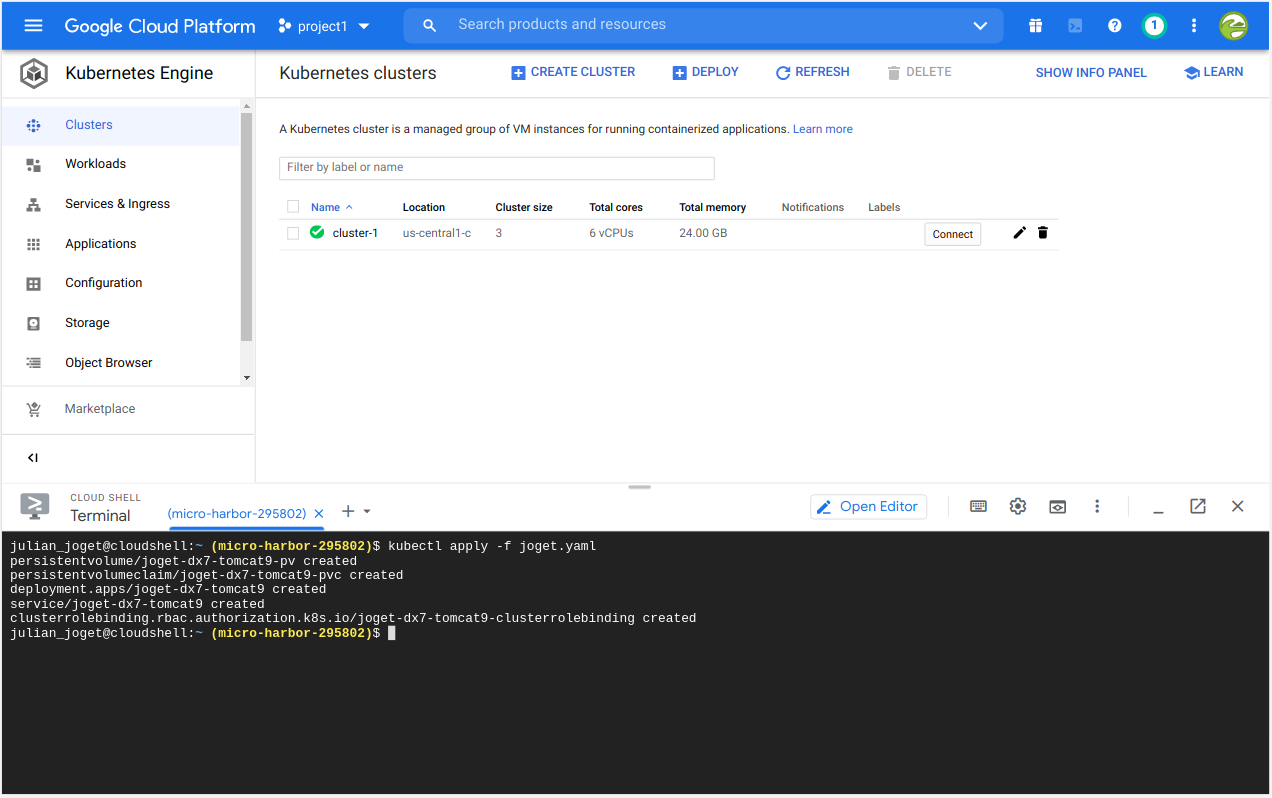 You can now use the kubectl command line tool to apply the entire YAML. In GKE, you can run a Cloud Shell directly in the browser.