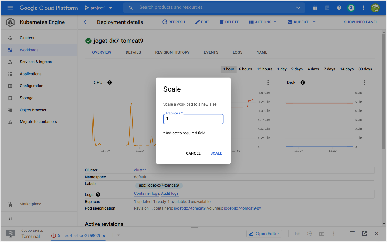Key in the required number of replicas (pods) that you require and click on the Scale button.