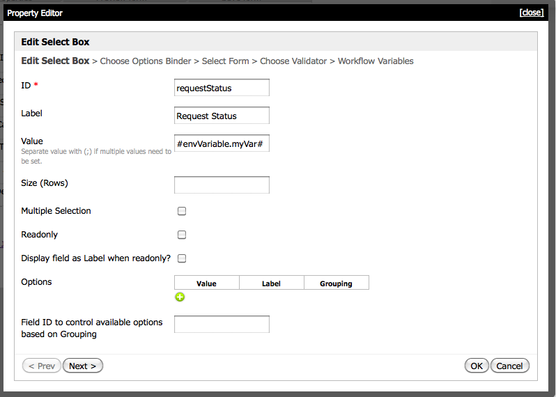 I'm trying to set the default selected option for a SelectBox when a form is first displayed to be a particular value. After the user changes the value and stores the form the value selected by the user should be displayed the next time the form is displayed. I tried to do this by entering a global hash (see below), but I also tried this by setting the value manually with text. In both cases when I load the form for the first time the value that I set is not displayed correctly (the value is not selected in the drop-down selectbox). Any ideas why this might not be working? One hint: The form is being loaded as a sub-form.