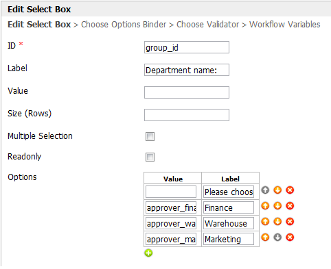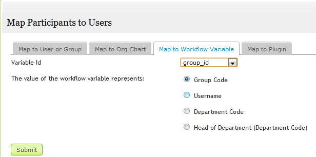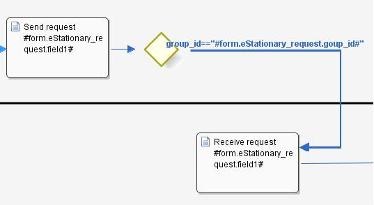 so in my workflow process i created a workflow variable name group_id and in the transition i put the condition : group_id=="#form.eStationary_request.group_id# , the hash variable will return the value selected by requester using a selectbox. Then i continue with mapping to participant, i choose map to workflow variable > select the variable Id =group_id > the value of the workflow variable represents = group code.