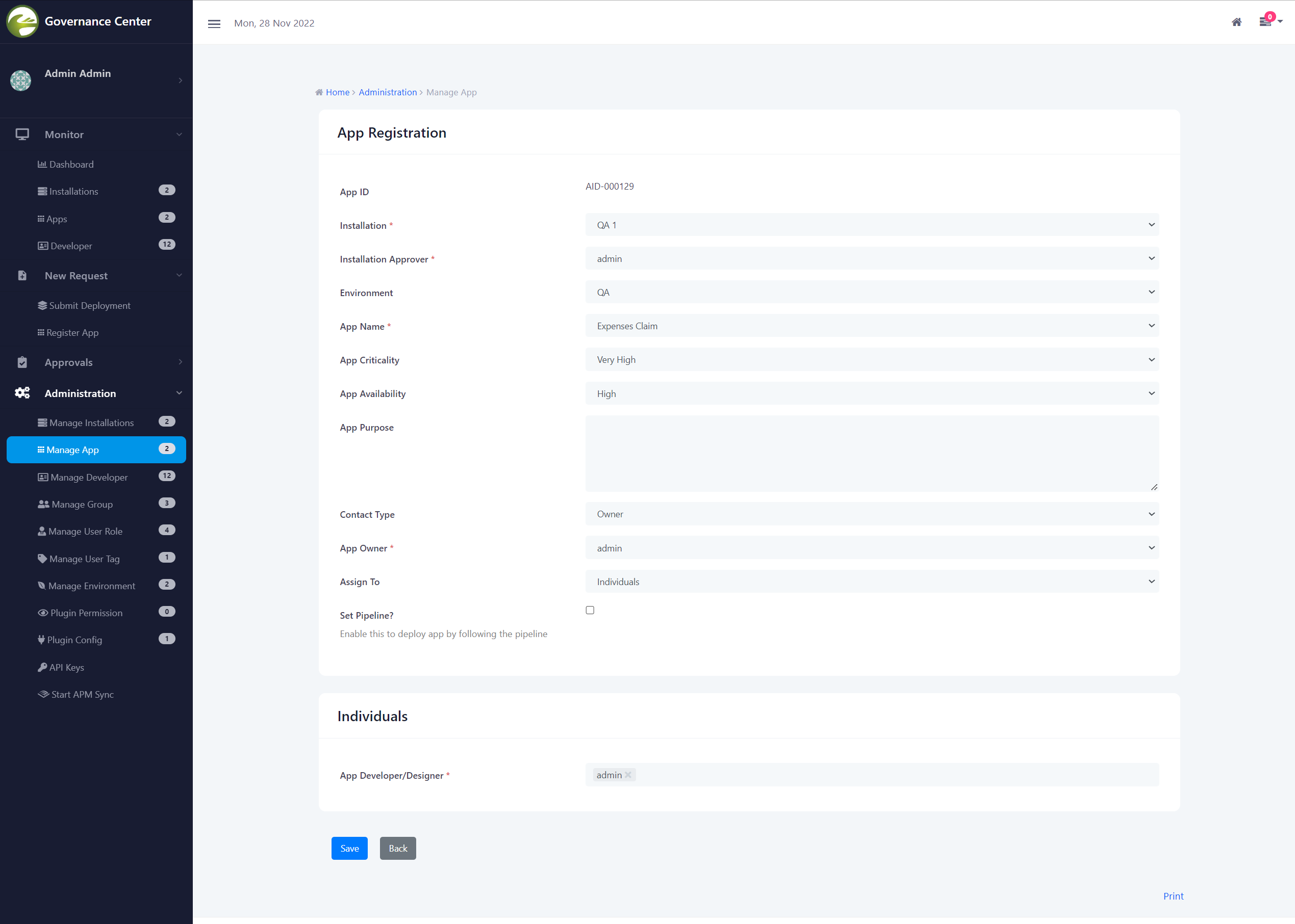 Manage App menu is used to manage and edit, add, or delete the application. The Manage App menu can also edit an application compared to the Monitor App administrator feature, which is used for just monitoring.