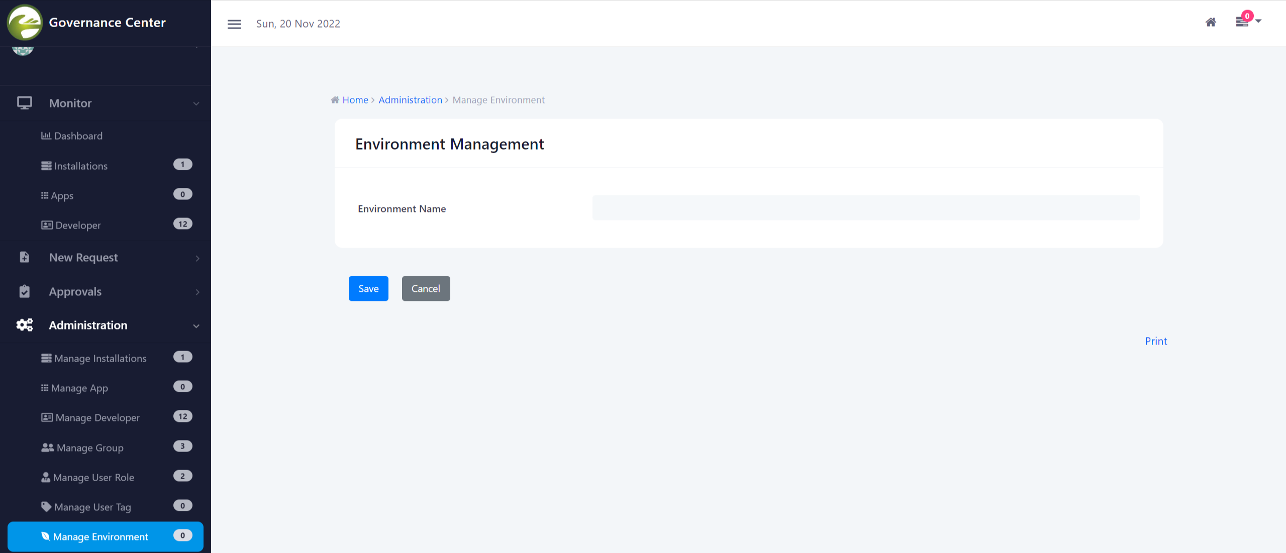 The Manage Environment Menu lists all your defined environments, as well as defining new environments and editing existing environments.