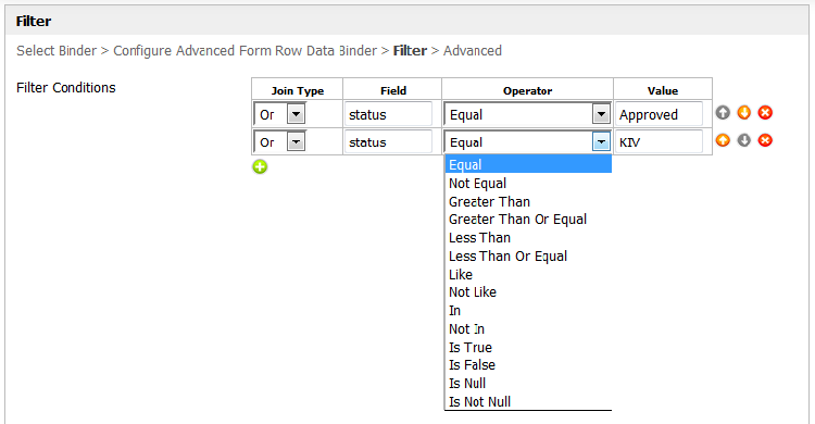 Advanced Form Row Data Binder is an extended version of the default Form Data Binder. It allows you to add in Filter Conditions in a guided and friendly manner.