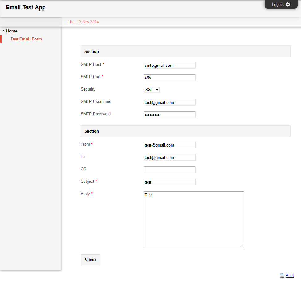 Figure 2: Submit to test send email